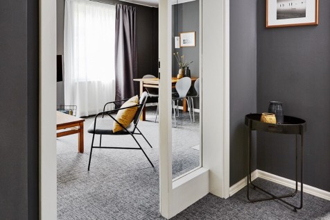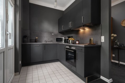Eine offene Küche, ein großer Wohnbereich mit Balkon, ein separates Schlafzimmer und ein großes Badezimmer: das ist unser 70qm-Appartment. Ob drei Tage oder drei Monate, Ihr Hamburg-Aufenthalt startet genau hier.